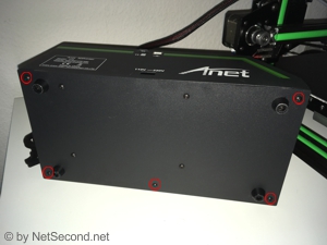Das Netzteil lässt sich einfach vom Boden lösen, indem man die auf dem ersten Bild sichtbaren nicht markierten vier Schrauben löst.